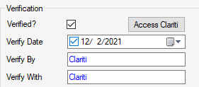 • If verification fails in Clariti, the Verified box will not be checked, and an info icon (