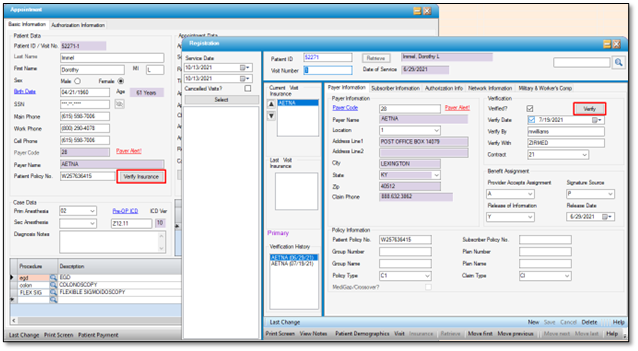 HST Practice Management’s partnership and integration with Waystar provides the ability to perform Real Time Verification from both the Appointment and Registration > Insurance forms with just the click of a button.