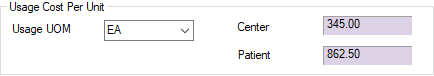 In the Usage Cost Per Unit section, select the unit of measure that will be used and/or billed. For most items, this should be each - as opposed to the purchasing unit of measure, which may be by box or case.