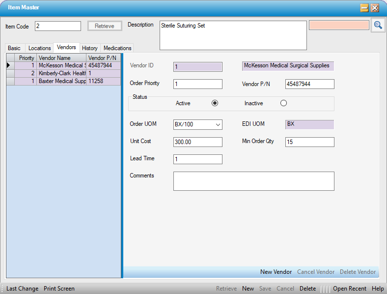 Enter the Order Priority. If this Vendor is the center’s first choice for this Item, enter 1 … and so on.