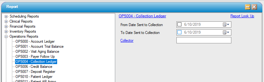 Filter the report based on Date Sent to Collection range, and/or specific Collector payer.