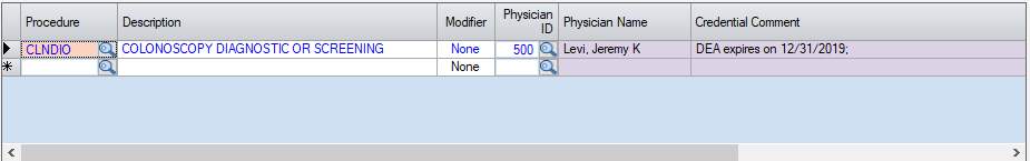• Example: In Appointment, when a physician is entered on a case, HST Practice Management can cross check the status and expiration information on the Credentials/Insurance tab of the Physician Profile. Any discrepancies will display under Credentialing Comments on the Appointment when the physician is entered.