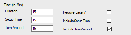- Example: If Duration is 15 minutes and Turn Around time is 15 minutes and the box is checked to include Turn Around, the duration for this procedure will default to 30 minutes. If the box is not checked to Include TurnAround, the default would be only 15 minutes.