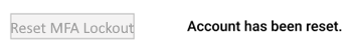 7. A message will appear to the right, after clicking the Reset MFA Lockout button. Account has been reset.