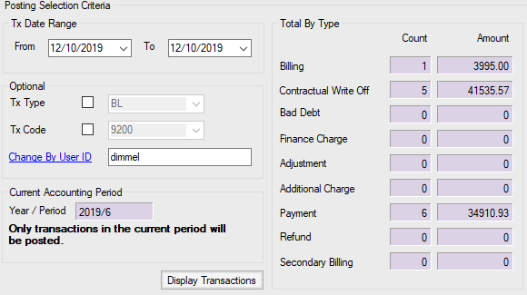 The criteria defaults to show unposted transactions for the current date. If the transaction dates have been edited to reflect the date of service for Charge Entry or the date payments were received and/or deposited for Payment Posting, be sure to change the Date Range to capture these transactions.